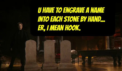 Speaking of graves, Mr. Gold meets Emma at Hook's tombstone. Apparently the Underworld is no match for a famous pirate who used to be the Dark One. And of course, the potion doesn't completely work and they can only see Hook, not speak with him.