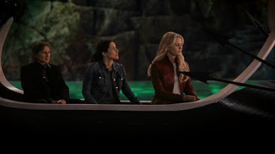 Mary Margaret, Emma and Regina go into the mines and run into Hades. This scene is basically Hades proving that he has cable TV and has been watching everything that's been happening in Storybrooke. Bummed out that they have no answers, Mary Margaret sulks back to her Underworld apartment. Regina makes it real by reminding her that she was totally badass as Snow White.