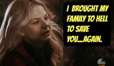 Instead of embracing her former true love she tells Neal she's going to the Underworld to rescue Hook. There's a little awkward stepping around the fact she didn't consider doing the same with Neal.
