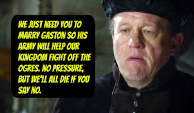 But this is irrelevant because when the handsome Gaston arrives, she's all, "Cool. Let's take a walk in the woods."