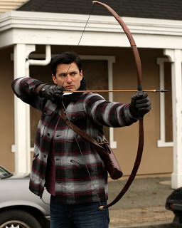 onceuponatimeabc.comWe flashback and discover teen Snow White was rescued by a young, muscly goof, Hercules. He tells her he has twelve brave acts to accomplish before he can get his wings or something. The last task is the hardest, to defeat the three headed hound. (Just like the one who tried to eat Emma and her family!) They bond, he teaches her to use a bow and arrow, she scares off the bandits and she makes him brave enough to go take on his last task. But before he goes, she gives him a kiss for good luck.