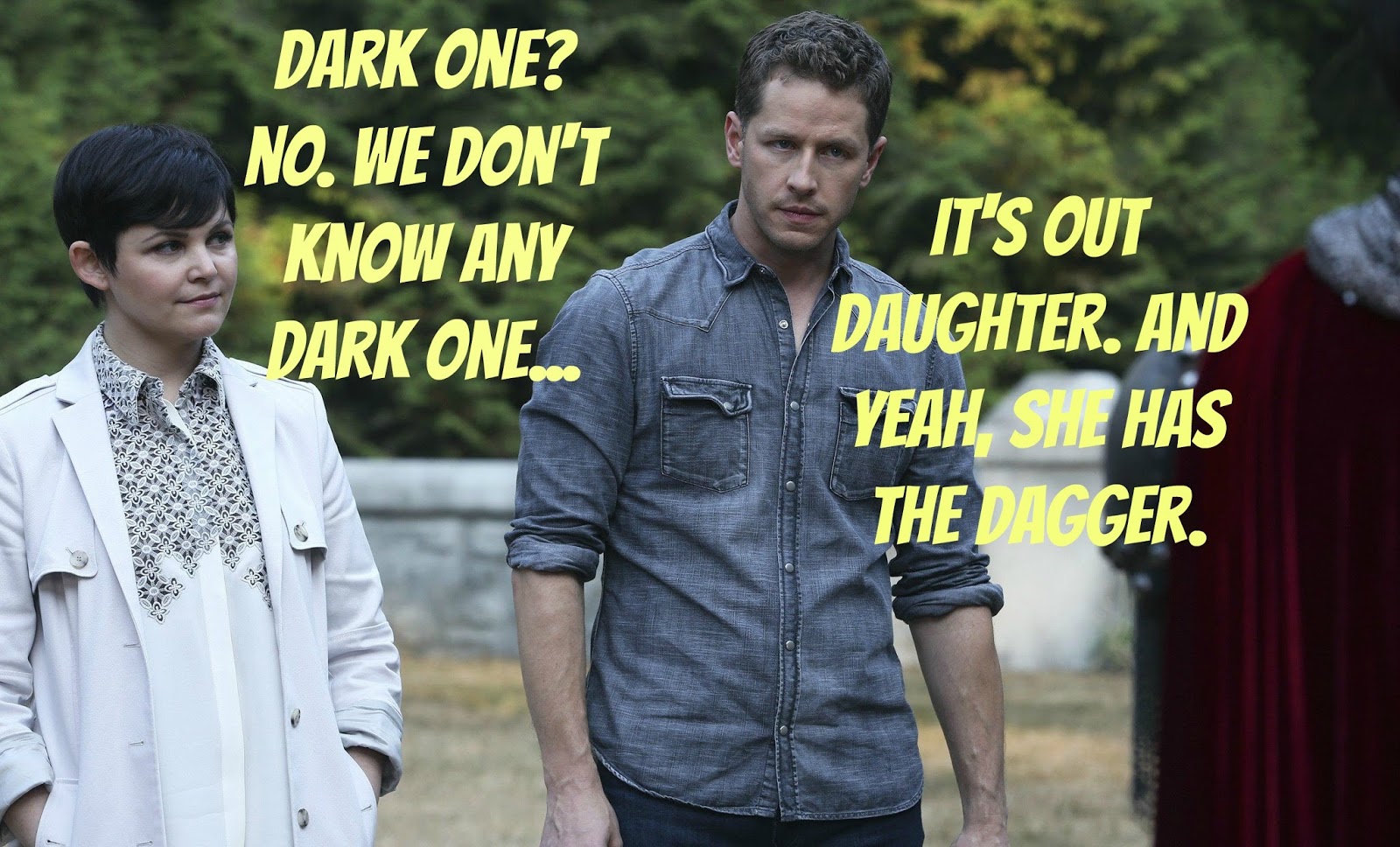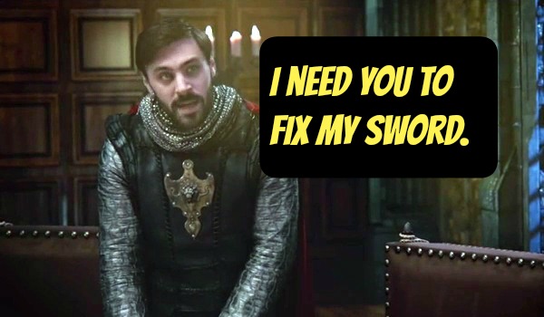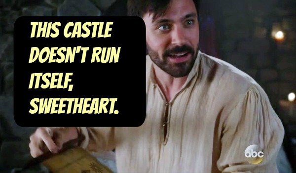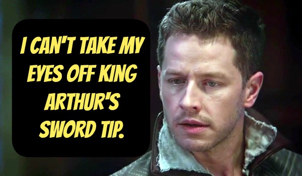 Back six weeks ago in Camelot, Charming realized Emma's dagger is the missing piece to Excalibur. Charming wants to give it to King Arthur since they're all good buddies and all, but Snow White says, "Seriously? Then our baby daughter will be under his control and he wants to kill the Dark One. Do the math, moron!"
