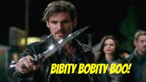 There's a lot of talk about Dark Ones and loving Dark Ones and how Belle loves Mr. Gold...blah, blah, blah...where is this going? Hook talks about how Mr. Gold was a coward before he was the Dark One and that he, Hook, was the villain in that case when he put his sword to his throat and threatened his life.