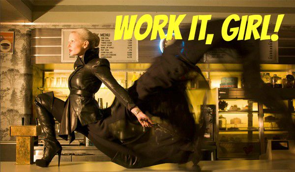Six weeks later, Granny's pub/diner/Laundromat slams back down into Storybrooke. But no one has any memory of what happened six weeks ago. Emma walks in with white eyebrows, wearing a long black cloak rocking the Dark One's look.