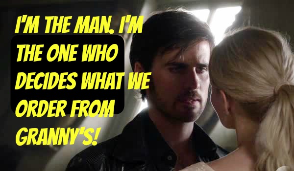 Across the street Hook wanders into Granny's pub/diner/laundromat like most characters do and chats up Robin a bit. Granny then plunks down a bag of take out and tells him Emma wants to meet him on his ship.