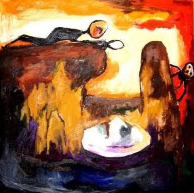 I was always afraid of popping into his mind at the wrong time, just as he was drifting off perhaps (perchance to dream?). He'd shake his fists as if he was the only one enslaved, but he'd rise and light the candle, the circles of pale yellow falling on his pen. The light was like the velvet curtain rising above the stage, the signal to push me down between folds of parchment again, creasing me with his ravaged nib. In the morning, I'd feel grateful for the ink stains that obscured my most recent reality. Smears and blobs fat as tears would make a better truth possible. You think I protest too much? A soliloquy in a pocket, another un-smooth course. The options could drive any muse mad. There are ghosts afoot tonight, and under a glass, the old story looms larger than life, as tangled as the weeds in my waterlogged hair.