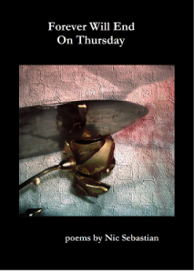 Just about to dive into Nic Sebastian's new poetry collection, Forever Will End On Thursday. These edgy portraits of missed connection, "places of happiness," and dysfunction are offered in several different formats -- MP3,CD, free PDF, an at-cost print version -- published by Lordly Dish Nanopress. Read about the history and inner workings of the new publishing paradigm here.