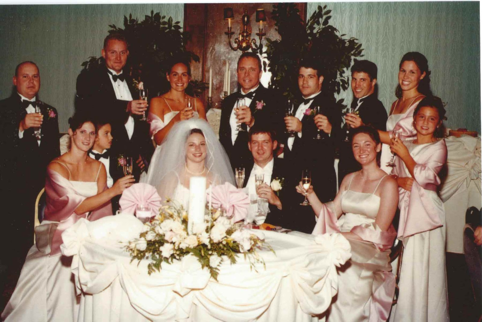 Here is a good shot of our wedding party. Now, between all of us, there are FIFTEEN children! The ring bearer is starting his freshman year at St. John's (Good luck, Tony!) and the Jr. Bridesmaid is on a semester abroad in Italy (Divertirsi, Genny!). We had good friends and family who stood by us and made our day special.