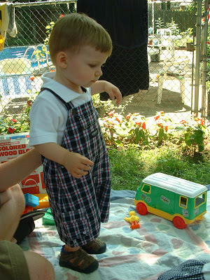 Big Brother was 17 months old when he wore it. So was cousin Jake, when the outfit originated: