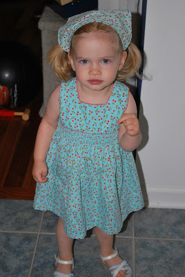 Ironically, Sophia's outfit was a borrowed hand-me-down from her older cousin. It was an adorable dress and kerchief with cherries on it. It did not make me sad to have to return it. I was just happy to have had the chance to see her in it in the first place.