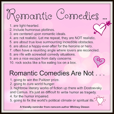 The very last thing I wanted was for people (writers and readers alike) who enjoy romantic comedies to be arguing and splitting hairs about whether a book has all of these points listed above or not and whether that precludes it from being a romantic comedy.