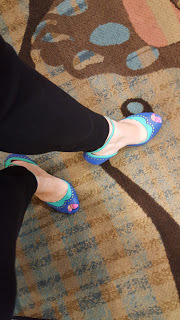 So now I'm home and I'm so tired I don't know where to put myself. My back hurts, my feet hurt, and my blisters have blisters. So while this was me at the conference: