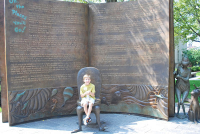 As a parent, the Dr. Seuss books took on a whole new meaning and love. When my son was born and very young, we received as gifts (and then purchased) a whole bunch of the Dr. Seuss books in the little board book form. Often they were abridged from the regular form, but this is how I grew to love the stories. Jake loved to be read to. Oh the hours we spent reading The Foot Book, There's a Wocket in my Pocket, One Fish Two Fish Red Fish Blue Fish, and ABC's. Despite the fact that my son is now a teenager (weep), I can still recite sections of them. Big A, little a, what begins with A? Aunt Annie's Alligator ... a ... a ... a. My dad "adopted" the nickname "the bofa on the sofa" from Wocket, in reference to the only place he will sit in our house. I swear, the couch cushion is indented from him and his numerous hours of babysitting.