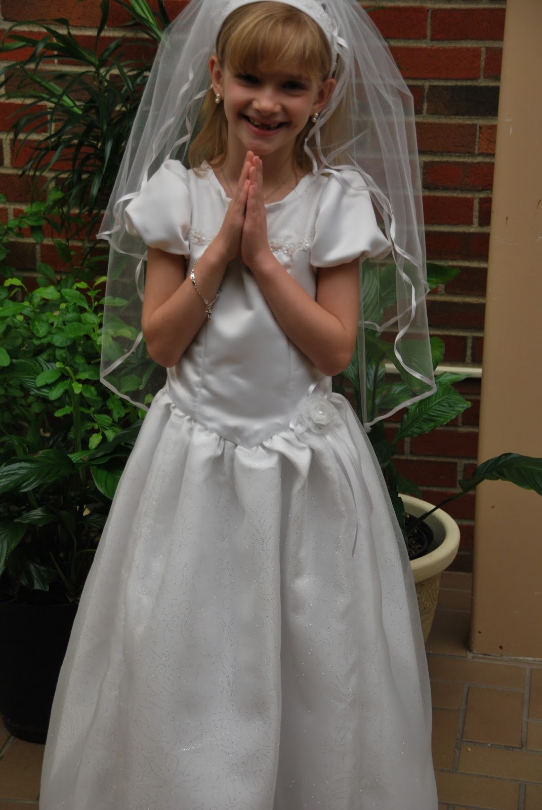 2015: Sophia made her First Communion and the church didn't fall down. Also, I made her dress and veil, and it didn't fall apart!