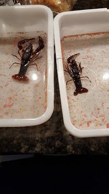 The other excitement in the Biel household is that my daughter "adopted" two crayfish from school today. Woo hoo. I'd said no. My husband (middle name "Sucker") signed the permission slip. Those suckers are a lot bigger than I'd expected and rather ugly. Words like etouffee and jambalaya keep floating through my mind.