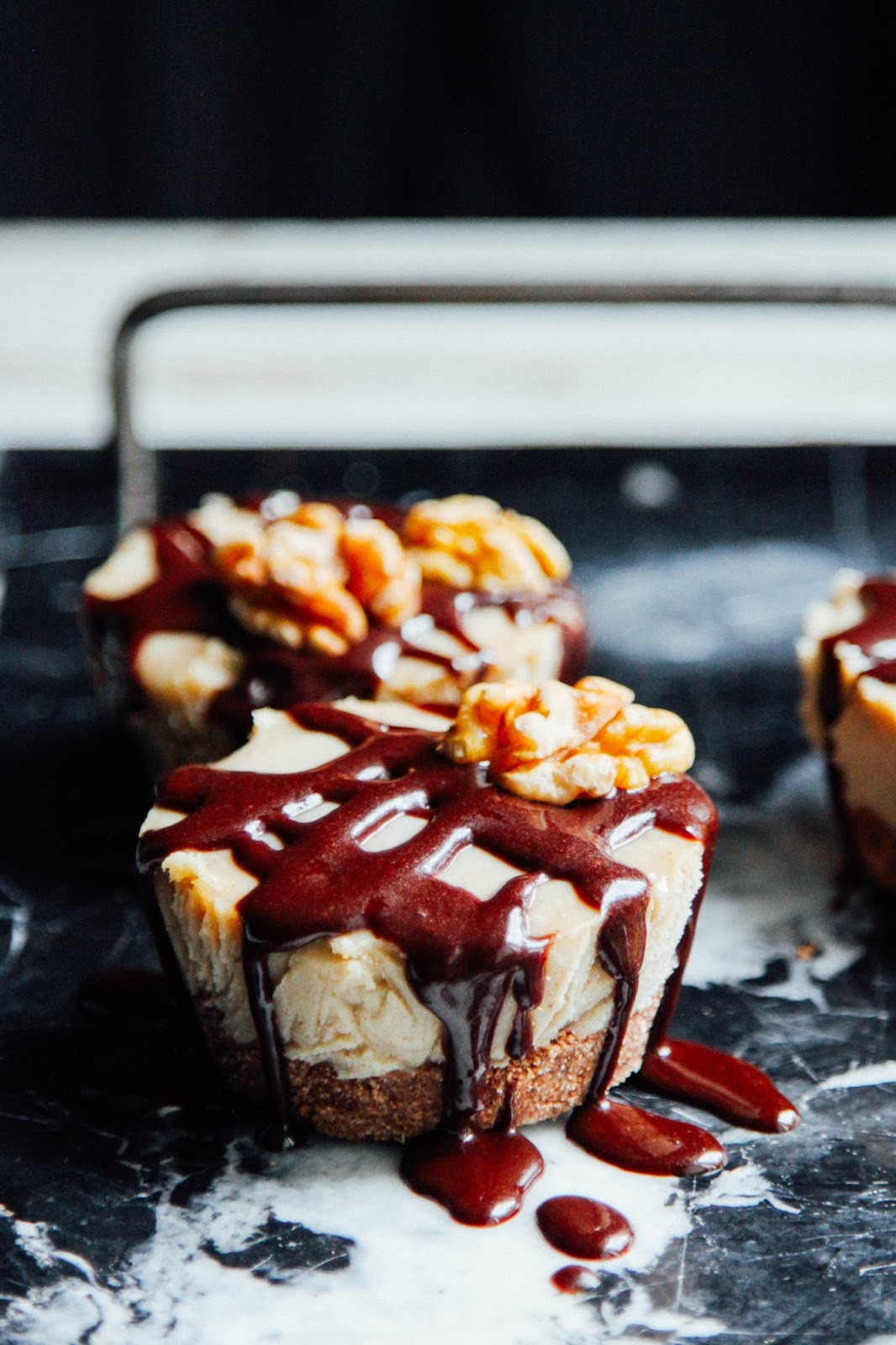 CHAI CHEESECAKES with CHOCOLATE DRIZZLE