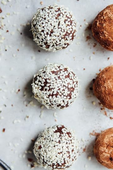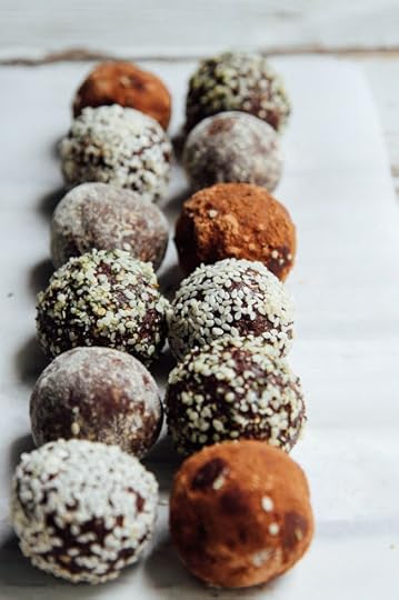 Roll the dough into balls and then coat in whatever you like! For the ones pictured, I used sesame seeds, hemp seeds, maca powder and cacao powder. Other ideas: cinnamon, berry powder, coconut flakes... it's up to you! Leave them in the fridge for a couple hours or eat right away. Enjoy!