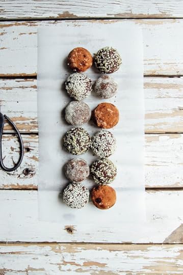 To make the donut holes: grind all the ingredients into a thick, moist dough in a food processor. Roll into balls and put in the freezer until cold and firm, around 20 minutes.