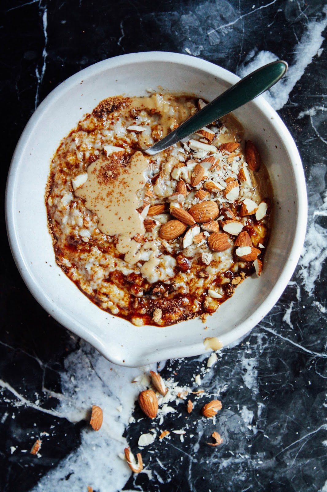 Second: this oatmeal! It's my fave way to make oats and it never gets old. I make it almost every day. and it gives me fuel for bike rides, the gym, and life. It's great for breakfast, lunch or dinner. The recipe takes a few minutes to make, tastes like cake, and is REALLY good for you! The best part is that you can dress it up or down as you see fit. Sometimes I'll add a whack load of stuff like cinnamon, ginger, chia seeds and goji berries and other days I'll just do coconut sugar with some nut butter. IT'S UP TO YOU.