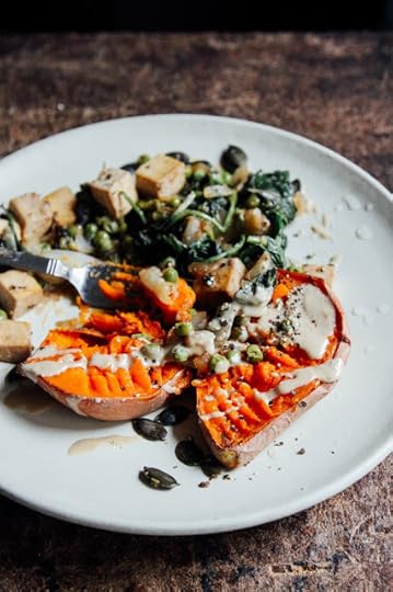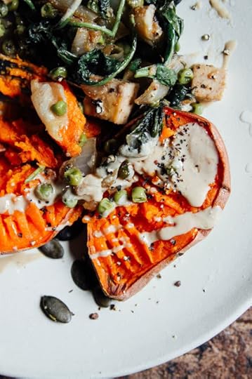 I hope you try out this recipe, it takes just a few minutes to whip up (not including the half hour or so for the yams to bake), it's super good for ya and tastes delicious. Obviously, I put tahini on it. I haven't had much of an appetite lately because of heartbreak, anxiety and depression (yippie) but today I actually felt like cooking a whole meal for myself. It's progress. It's a step in the right direction. Take care of yourself. XO