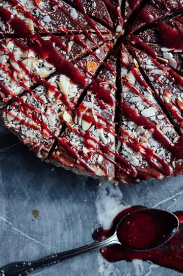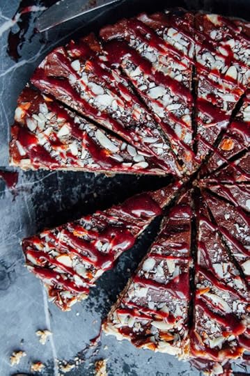 To make the chocolate: melt the coconut oil and then stir in the rest of the ingredients until it's smooth. Spread on top of your caramel layer and put back in the freezer overnight. Optional: Sprinkle the tart the slivered almonds.
