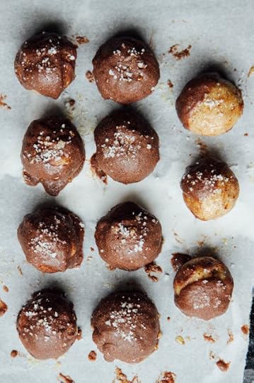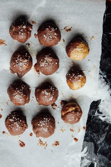 The centre of these truffles is a sweet, gooey dough made with nuts, oats, coconut oil and maple syrup. You can use dates instead of coco oil and maple syrup if you wanna. Then we cover these dough balls in chocolate and sprinkle them with salt flakes. Leave them in the freezer if you want them more firm, or the fridge if you prefer a softer texture. I made these after seeing a couple different people post their own salted chocolate orbs on Instagram (where else), they just looked so damn sexy, I couldn't get them out of my head so I made my own. To be honest I think mine turned out kinda ugly but hey, looks aren't everything. And of course me being me, I also see them in an opposite light: messy = cute!?