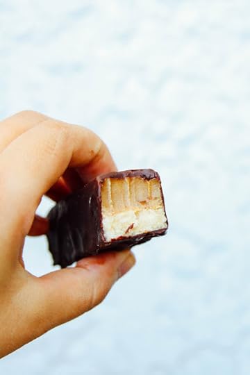 To make the caramel: soak the dates in warm water for 10 minutes (then keep this water for the recipe). Blend all ingredients until smooth, thick and caramel-y! It should taste amazing. Spread evenly onto the cookie layer and place back in the freezer until solid. It will take a couple hours to harden up.