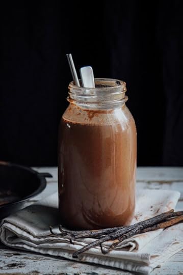 When I was a kid I loved chocolate milk. At my elementary school there would be special lunches once a month or something, and we'd get to choose between pizza and sushi for food, and plain milk or chocolate milk for a drink. I always chose chocolate milk, and usually pizza, until I grew up a little and thought I was really sophisticated by choosing sushi... that sophisticated imitation crab meat. The chocolate milk came in a plastic cup with a sealed tin foil lid, so you'd break the tin foil with a straw then drink up the sweet nectar inside and all was well because life was simple back then. Now life is overwhelmingly complicated but chocolate milk is still amazing, I just make it myself and don't use dairy (leave cow milk to the baby cows).