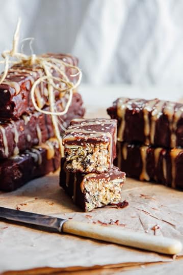 I loooove Builder's Bars, they taste so good after a tough workout and are basically just protein-rich vegan chocolate bars. But the ingredients are really refined and I'm not into the packaging or price. Ideally I want to eat one everyday but it just doesn't seem like a sustainable routine; I'd rather make my own. And so... voila. These homemade power bars are full of healthy fats and proteins from seeds, nuts, coconut and oats; and energy-giving carbs from dried fruits. They taste great and are the perfect food to refuel fast after I'm done at the gym. They are quite rich and dense so cutting them in half might be a good idea before you chow down. At the same time, I'm not the food police. Eat as much as you want... and eat them anytime! You don't have to do exercise to be deserving of delicious food.