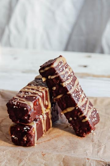 To make the chocolate: melt the coconut oil then stir the other ingredients into it until you have liquid mint chocolate. Dip the solid bars into the chocolate and set them on a cooling rack or lined backing pan, then pour the remaining chocolate over the bars so they are double coated. Leave in the fridge or freezer to harden the chocolate while you make the baobab drizzle.