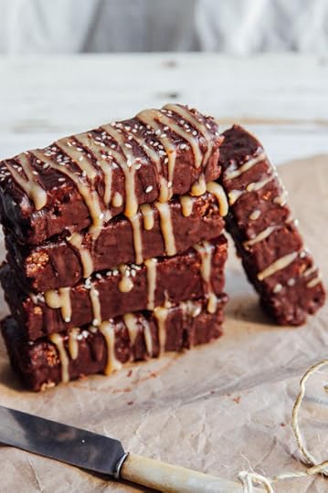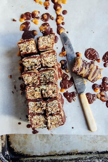 To make the drizzle: melt the coconut oil then stir in the rest of the ingredients, it ends up looking like caramel! Drizzle over your chocolate-coated bars and put in the fridge overnight. Enjoy!