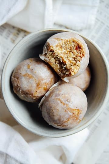 To make the glaze: melt the coconut oil on low heat, turn off the heat then whisk in the syrup and vanilla. It will take a second or two but pretty quickly it'll combine into a thin caramel-y consistency. Dip the solid donut holes into the glaze, covering each one completely. Put them back in the freezer until the glaze has hardened, then repeat until you use up all the glaze (you will probably have to re-whisk the glaze every time before re-dipping). I dipped them and put them back in the freezer three times total. Store the donut holes in the fridge for up to a week.