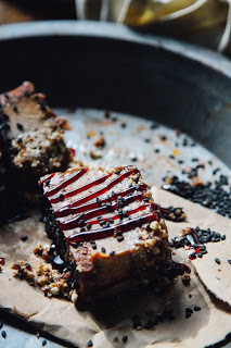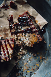 As the title suggests (or rather, explicitly tells you) these babies are crunchy, gooey and sweet. We have got three layers going on and they each bring their own delicious personalities to the table. The crust is crunchy thanks to the buckwheat, it's like little bite explosions. The caramel is RIDICULOUS and addictive. Tastes like all things fancy and rich. The chocolate is... well, we have all already come to love raw chocolate so I don't need to say more. It's damn good. Bring all these components together and whadda we get? Multiple foodgasms! Yaaaaaaay.