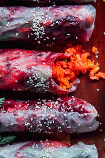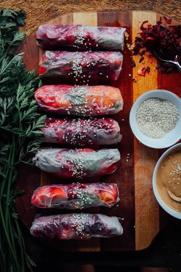 YAY 4 SUMMER ROLLS! These are super cute and even more delicious to eat. I am sorry I haven't been posting very often lately but that's gonna change. I'm going to be spending more time on this blog again now that my third book, The Rawsome Vegan Cookbook, is finished! You can pre-order it now if you'd like (you'd like). On that note, this recipe for summer rolls is a great example of the kind of recipes that fill up my new cookbook so if you dig these rolls, you will REALLY dig the book.