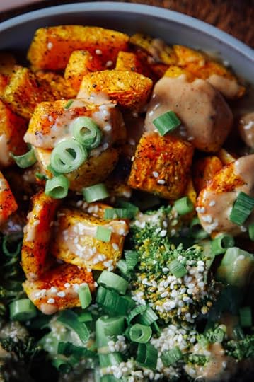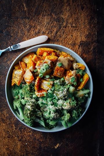 Place butternut squash and broccoli on a plate or in a bowl, drizzle with your sauce, then sprinkle on green onion and sesame seeds.