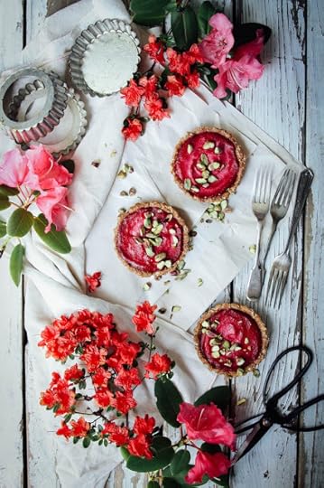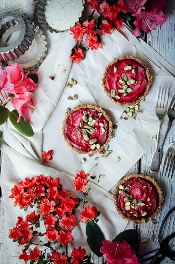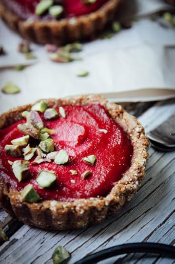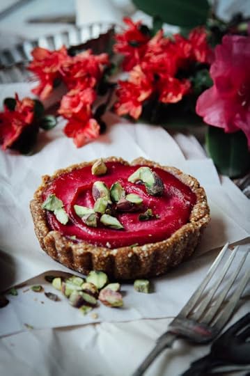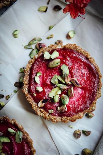 To make the cream: blend all ingredients together until smooth and like very thick yogurt. Pour into your tart crusts and refrigerate overnight so the flavours can develop. Garnish with chopped pistachios and enjoy! Note: I had some left over cream so I blended it with water and got pink cashew beet mylk. Cool.