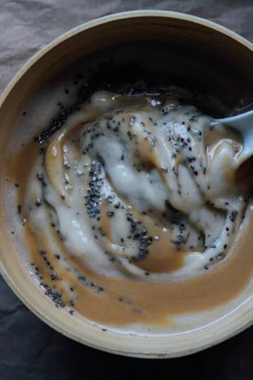 Blend the bananas into soft serve ice cream in a blender or food processor, adding some water if you need to. Sprinkle on chia seeds and almond butter. Mmm.