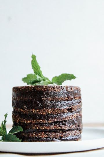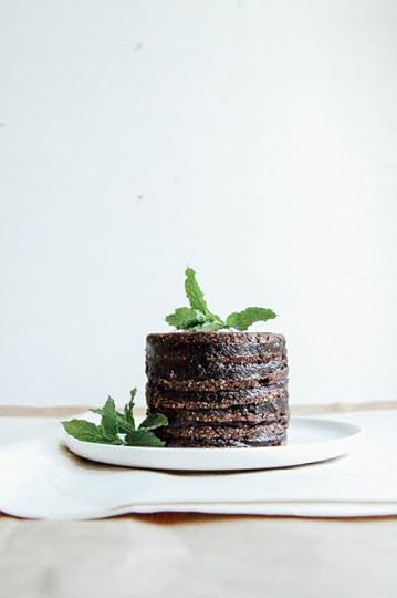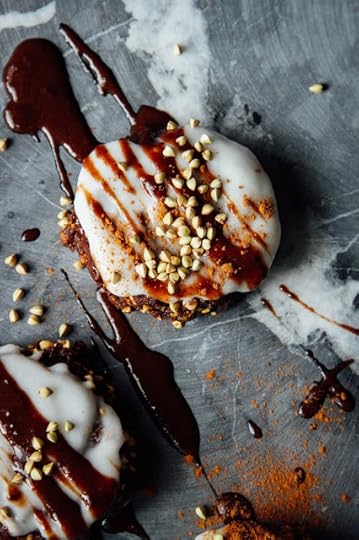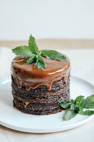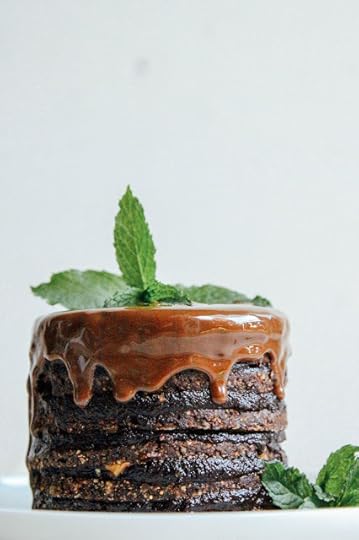 Assembly: frost a cake layer, then add another on top, and so on and so on until you've used up all your cake or all your frosting. Decorate as you like (I threw on some hazelnut butter instead of chocolate sauce since I used up all my cacao) and enjoy! This would be terrific with banana ice cream.