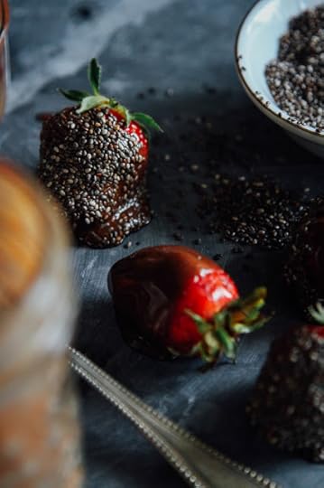 Wash the berries. Stir the cinnamon into the walnut butter with the maple syrup (ya just made walnut-cinnamon butter). Dip the berries into the walnut-cinnamon butter, then roll around in chia seeds. Nom.