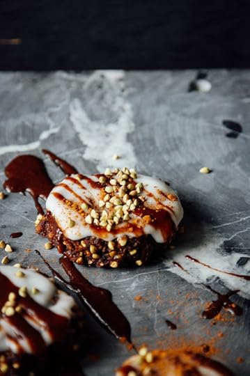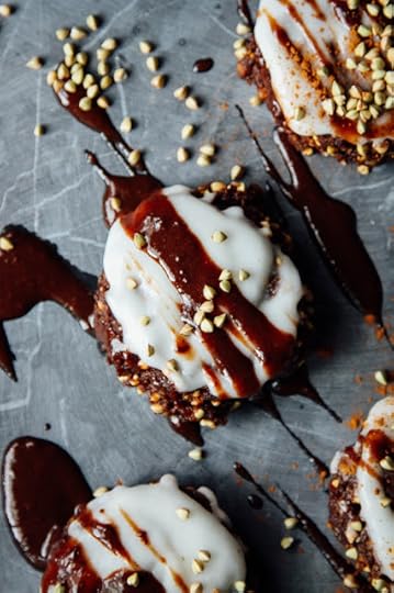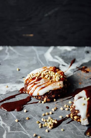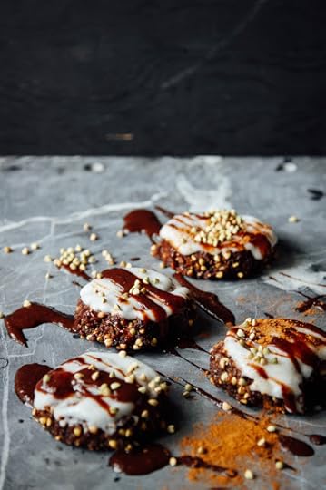 I had some coconut meat in the fridge too so I figured, "Hey, may as well..." And then there was coconut cream. Of course when you put coconut cream on stuff, it makes it taste around 337 times better (research is still being carried out though so the estimates are not exact at this time). Finally I drizzled on a quick raw chocolate sauce - FYI I do not need a reason to do this - and that's what you're lookin' at now: banana bread buckwheat cookies covered in coconut cream and chocolate sauce. All raw, all vegan, all gluten-free, all too delicious. The only ingredients are fruit, nuts, seeds and oh, that's it. "HOW IS POSSIBLE!?" You might ask. It's possible because evolution is so damn neat that we have grown over millions of years to love the taste of sweetness and so we've continued to support symbiotic relationships with sweet things (aka fruit). It's become something our bodies really enjoy consuming, and also know how to take advantage of. There's no need to refine the sh#t out of plants - like white sugar - to make them taste good. Companies just do that so they get their shoppers addicted to their product. It's kinda depressing and scary to learn about. While they are doing that, I'm over here eating whole foods and being content as a chipmunk in a pile of pine nuts. White flour is boring, butter is gross and I am pretty sure that milk was supposed to be for the baby cows, and white sugar effects our brains in the same way cocaine does. Soooooo Imma stick wit bananas and buckwheat. Way yummier.