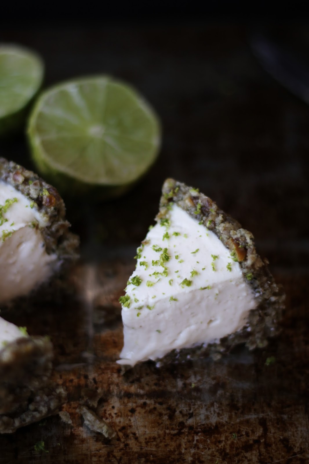 The crust of this pie is made up of hemp seeds and dates. I love the taste of cannabis. Don't worry - hemp seeds have practically no THC, which is the stuff that gets ya high (but you can find plenty of THC in its close cousin, the notorious marijuana plant... just sayin'). Hemp is full of protein, fiber, and a gorgeous balance of healthy fats: omega 3's and 6's. The coconut and lime cream part of the pie is basically what it sounds like; it is made up of coconut meat, coconut oil, coconut nectar and a lime. Yep. The best things in life are the simplest.
