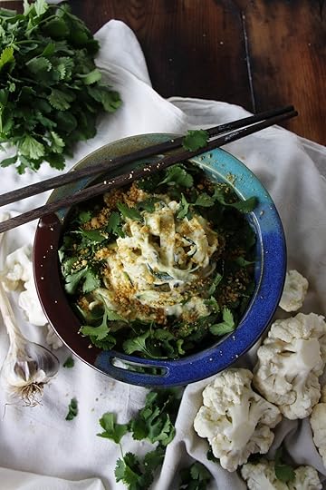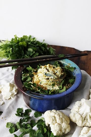To make the sauce: blend all the ingredients together until smooth and thick, adjusting according to taste. Mix into your noodles and let them sit for 10 minutes to soak up the sauce. Top off with parma and cilantro and enjoy.