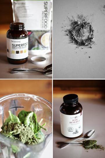 Beaming was generous enough to send me their smoothie kit which includes all those incredibly powerful super foods. They also sent me Artisana Coconut Butter and I am. Flipping. Out. It’s basically the best coconut product out there and smells like coco bliss heaven (yes it`s an actual physical location… in my daydreams). Back to the subject at hand: among a bunch of bags of maca powder, cacao nibs, goji berries and hemp seeds; I also received a jar of Amazing Grass’ Raw Reserve Green Superfood which contains all the greens listed above, as well as a jar of Beaming’s Superfood Smoothie Blend, which contains all the other great stuff. Adding a tablespoon or two of each of these blends to your smoothie every day allows you to get all those magical foods into your body within minutes! I am happy! I am smiling! I am jumping up and down! Actually I was sitting on the floor, but I like to think of myself as an honest person so I got up and jumped around a little bit.