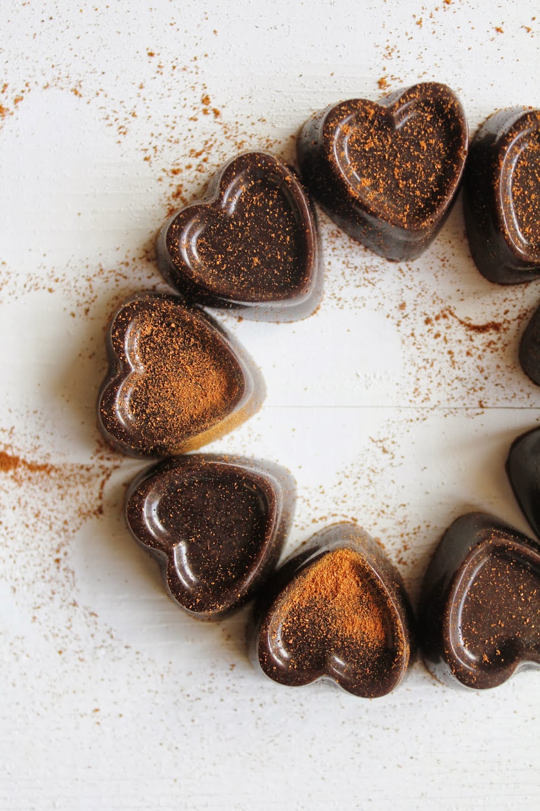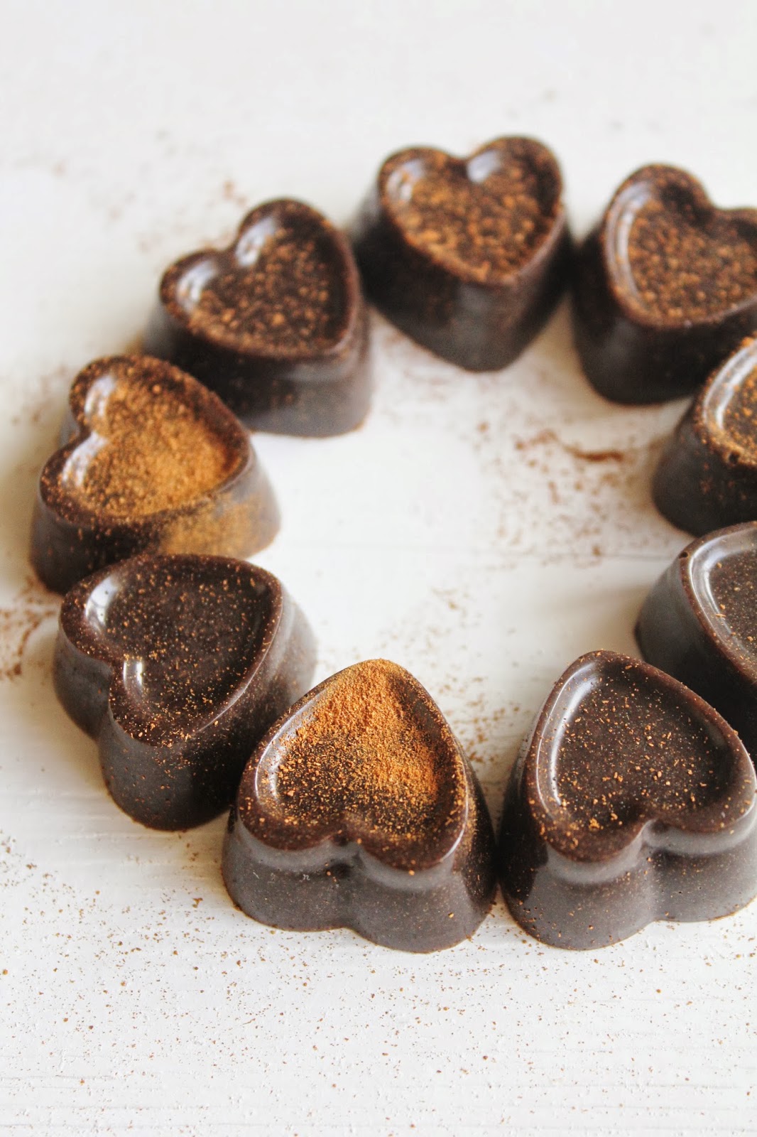 Whisk all the ingredients together until smooth but still liquid. If it's too thick, add more coconut nectar or melted cacao butter. Taste it and make sure you are in love, otherwise... adjust it to your desires. Pour into chocolate molds or onto parchment paper and set in the fridge for an hour or two, until solid. Enjoy!