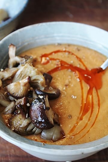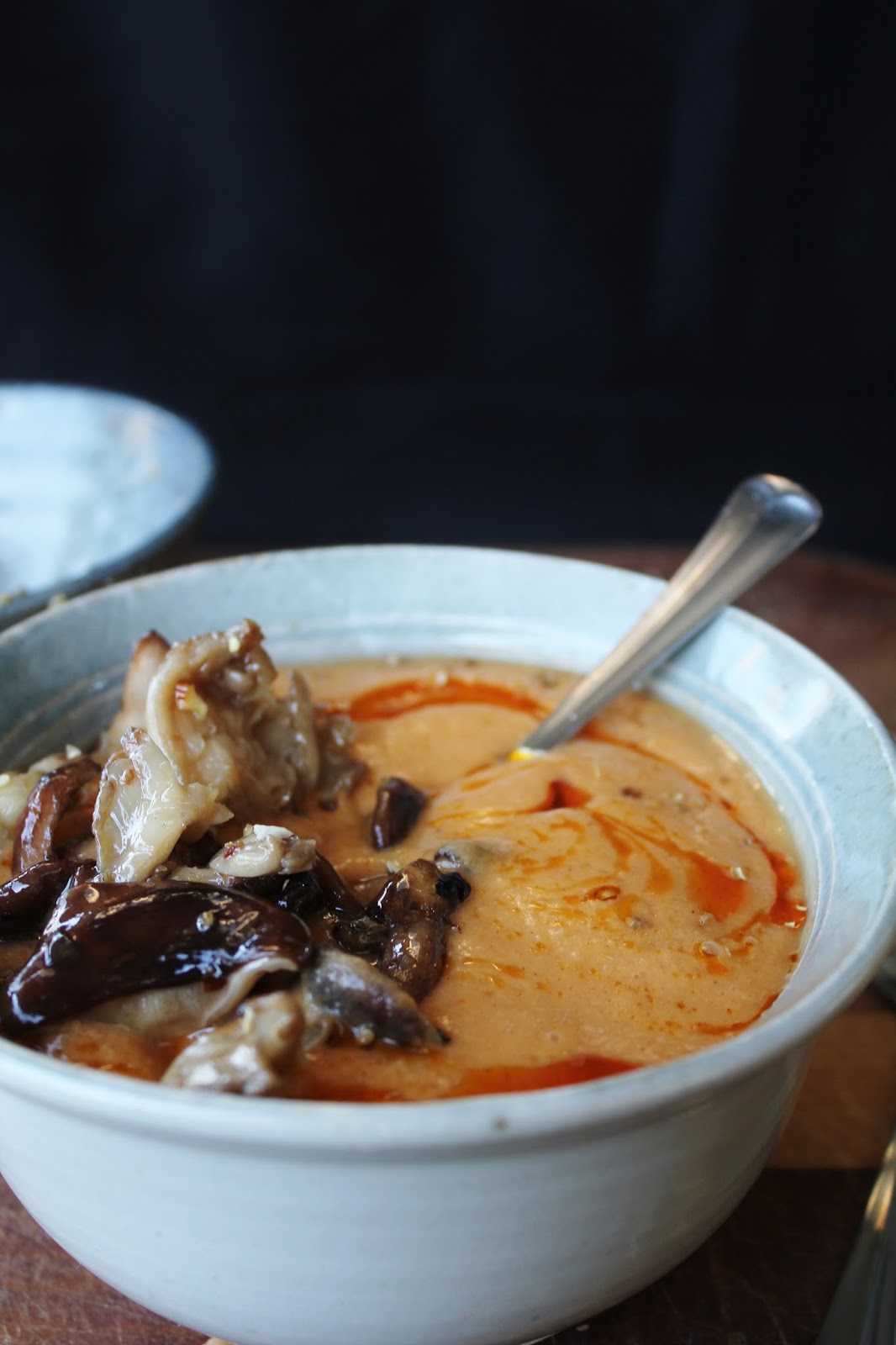CREAMY BUTTERNUT SQUASH SOUP with MARINATED MUSHROOMS