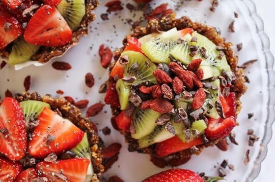 DESSERTSChocolate pudding tart with coconut cream & goji berriesVanilla chocolate chunk cheesecakeDark chocolate cake with spiced date caramelRaw pumpkin pieChocolate cream caramel bars Nut-free fruit tartsBerry tart with almond caramelLemon and fig cheesecake