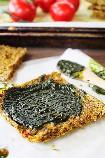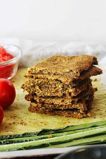 Grind the flax and sunflower seeds into flour in a high speed blender. Put this flour in a food processor. Add the other ingredients to the food processor. Pulse until the mixture becomes kinda like chunky paste. You may have to mix it up with a spatula a few times. Spread onto dehydrator trays and dehydrate for about 2 hours, then slice into squares and flip over. Dehydrate for another 2 hours until the slices are pliable. Note: if you don't have a dehydrator, use your oven at it's lowest temperature.