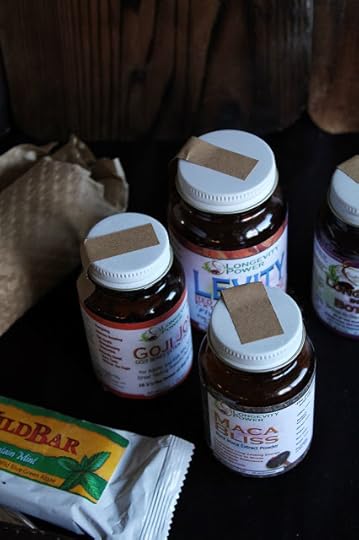 Among the powders I received, there was maca, spirulina and goji berry. I also am experimenting with the red asparagus root powder which is supposed to alleviate stress. And finally there's one bottle that apparently has over 60 super foods in it... woah, man. That's the one I like adding to my smoothies. When I share it with friends, they say they notice they feel "cleaner" or "clearer".