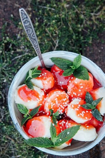 BANANA BOWLS with STRAWBERRY SAUCE + MINT