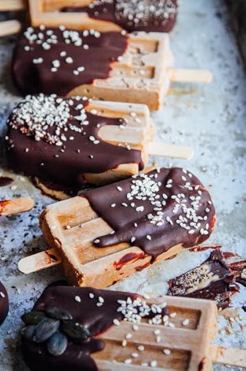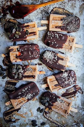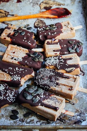 To make the chocolate: melt the coconut oil and stir all the ingredients together. Dip the frozen pops in your liquid chocolate and decorate 'em with seeds and nuts (I used sesame seeds, pumpkin seeds and chia seeds)! ENJOY.
